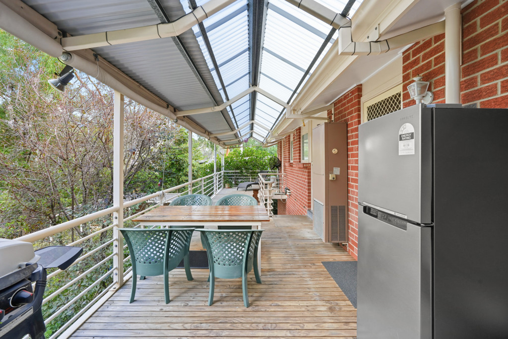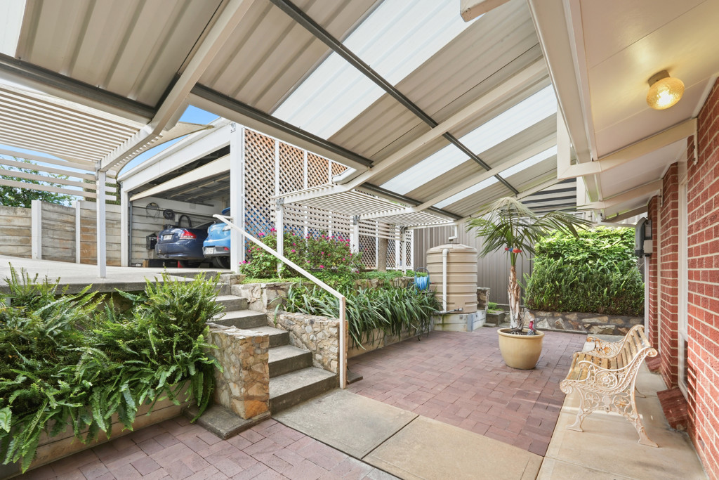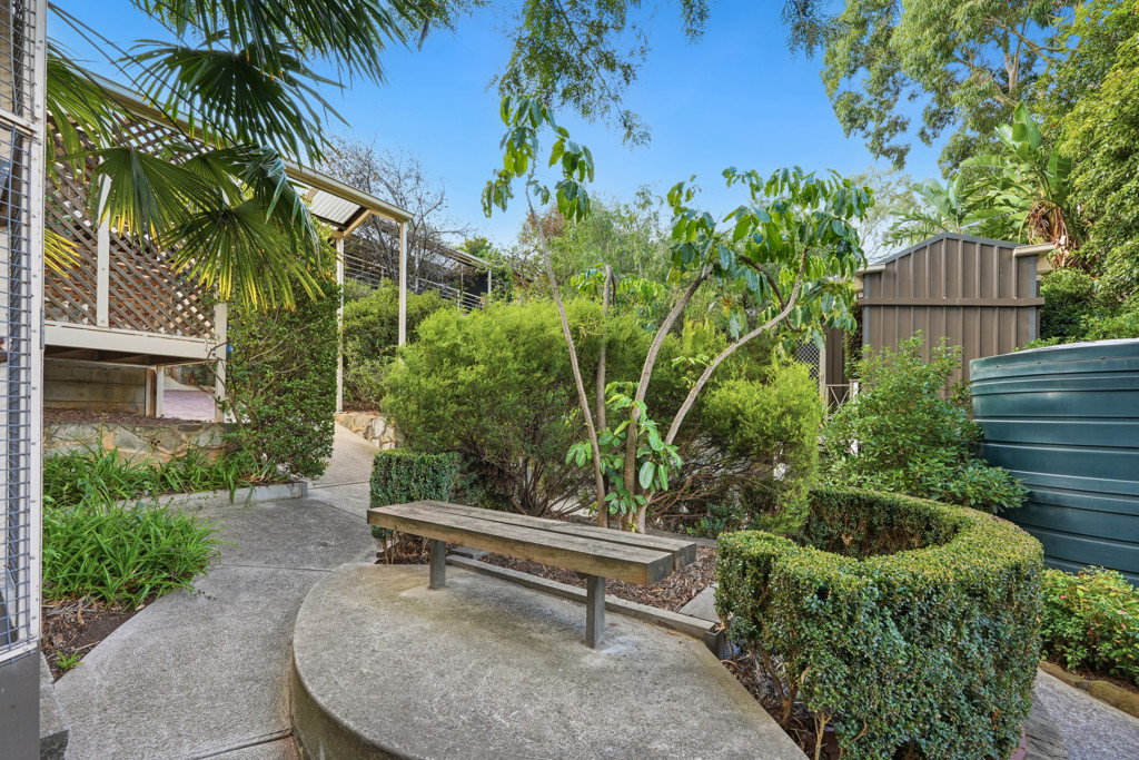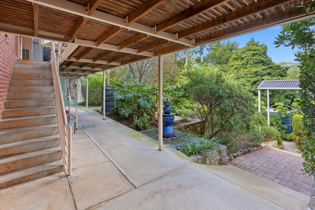 Outdoors, the backyard is a lush, established sanctuary supported by a three-tank irrigation system (all on pumps). Enjoy morning coffee on the elevated balcony or entertain in the separate BBQ area. A detached granny flat/studio with split system adds flexibility as a gym, art space, or guest retreat, while a mini orchard of almond, mandarin, and nectarine trees completes the setting.