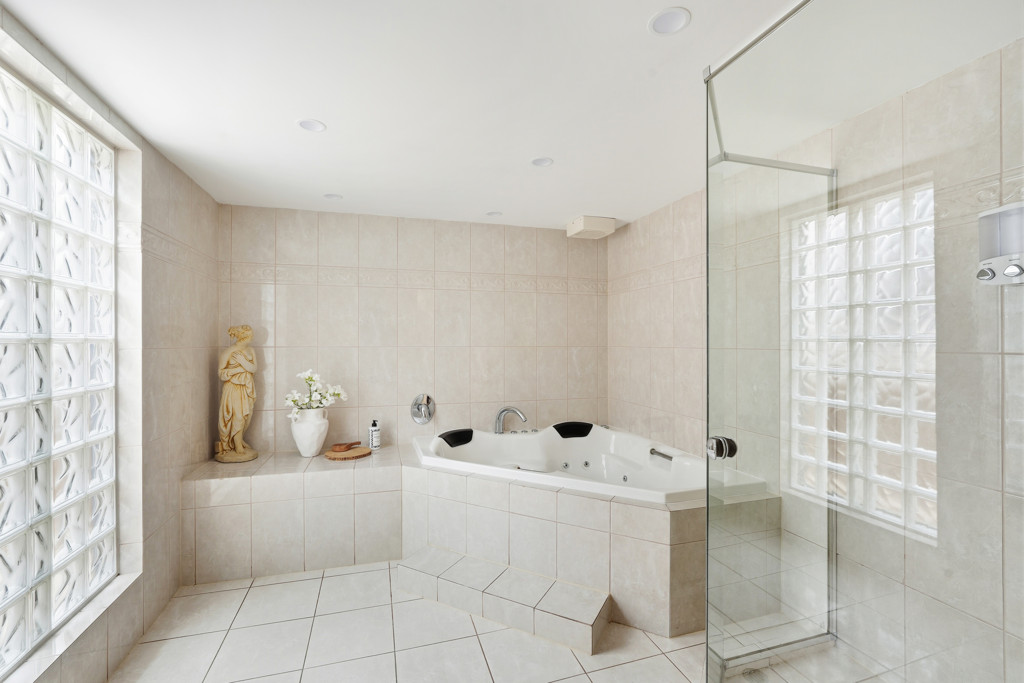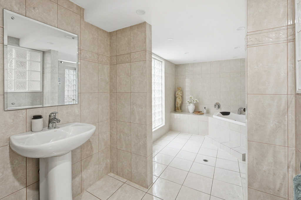 • Large master bathroom with a deep spa bath and spacious shower and toilet plus a separate toilet off the laundry.
