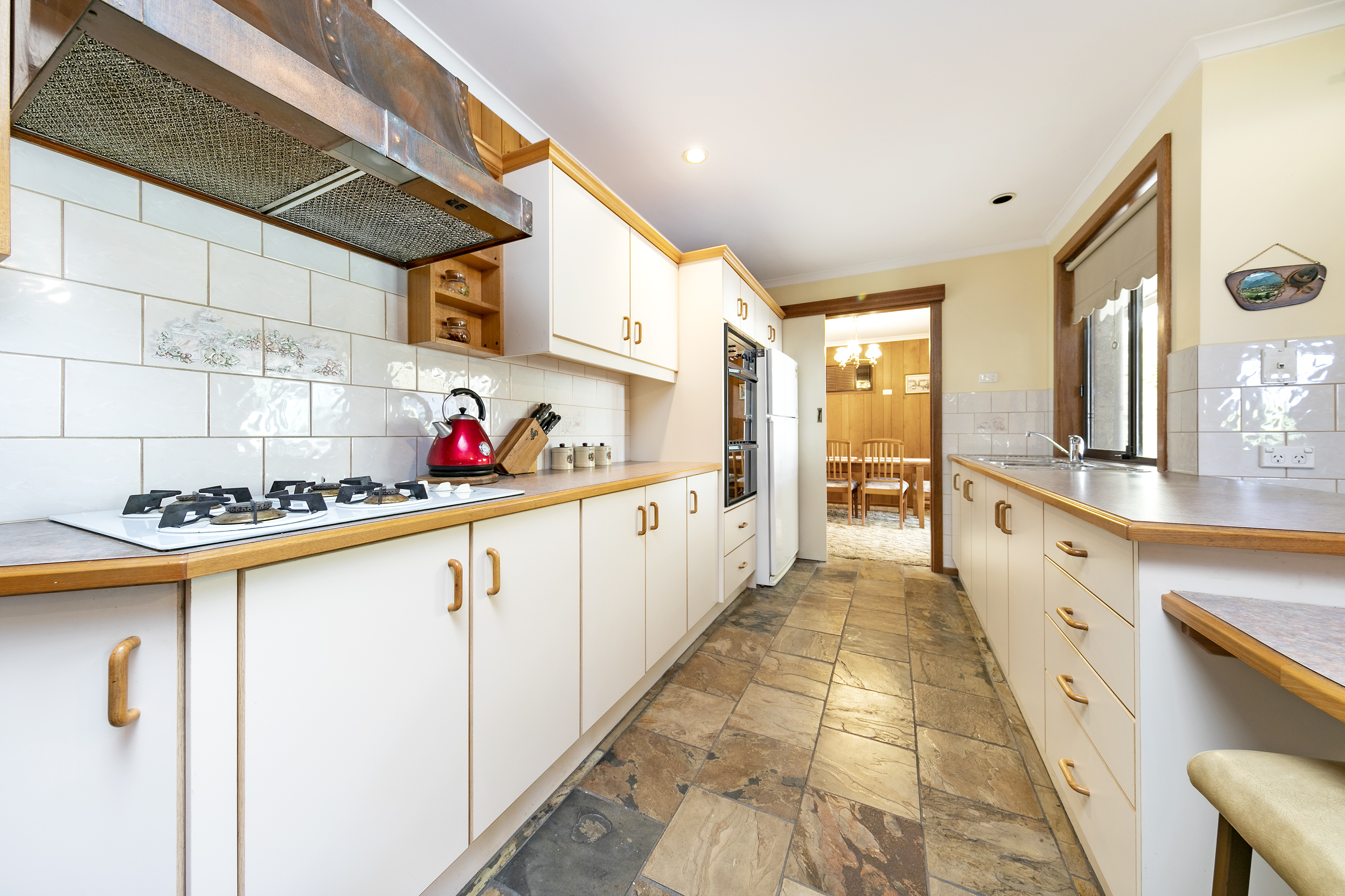 • Open plan kitchen with gas cooktop and appliances, plenty of storage and with enough space which could be used as a dining area or a second living