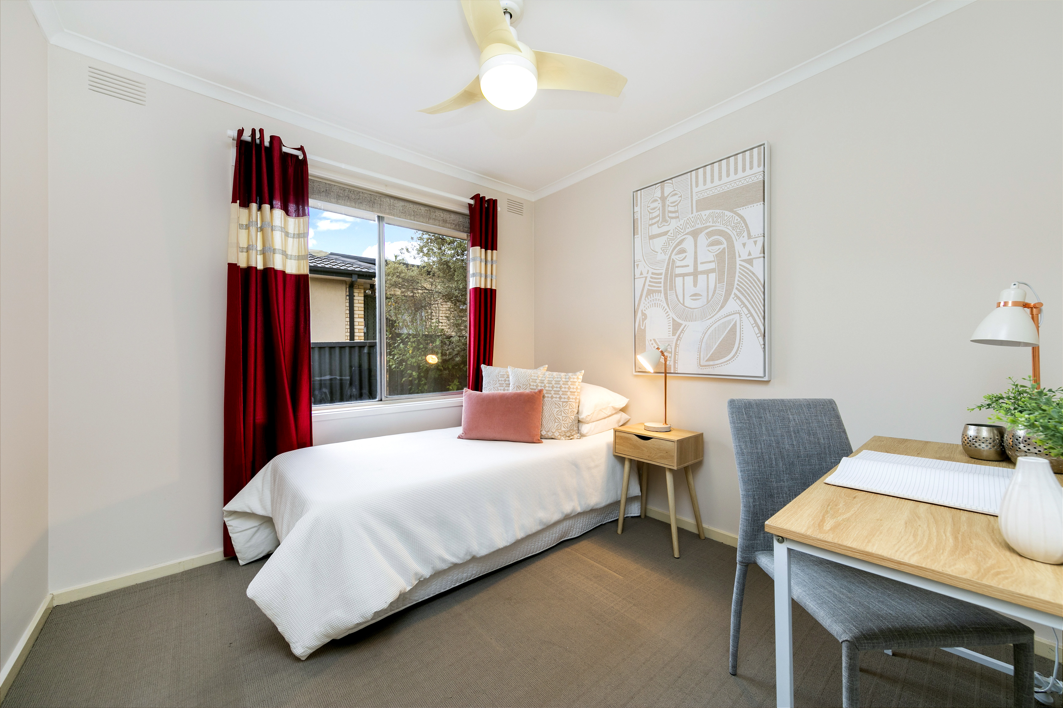 - Third bedroom with mirrored built-in robes and ceiling fan