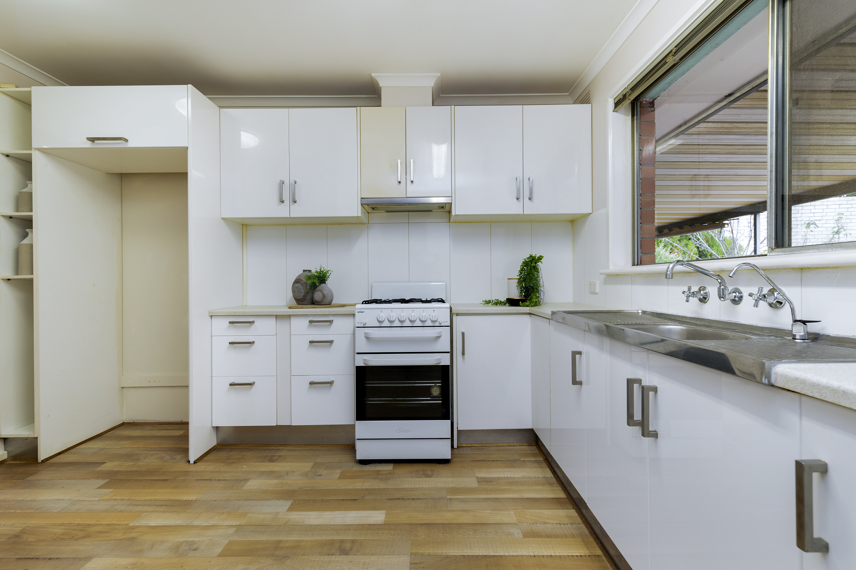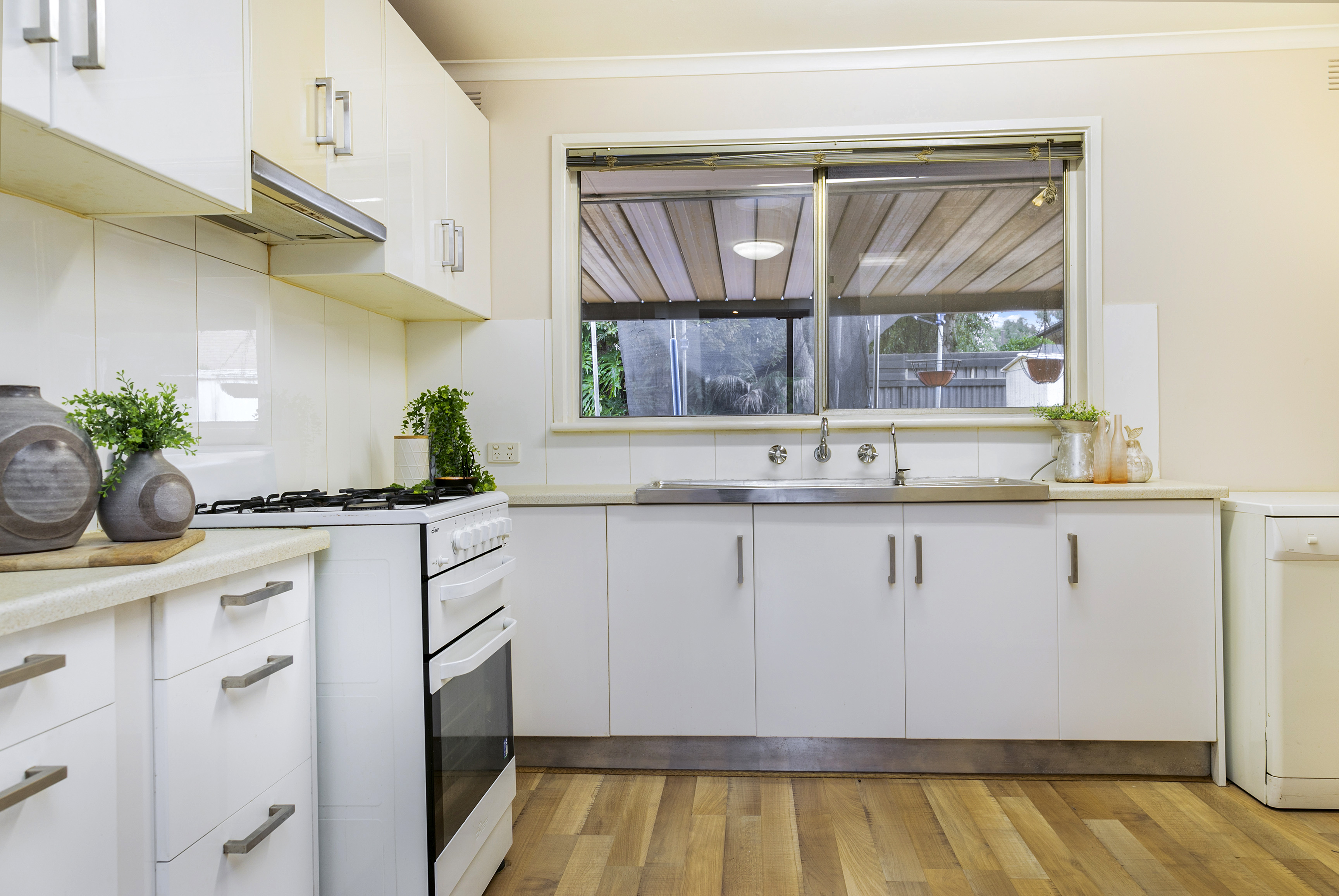 - Modern kitchen with gas cooktop, dishwasher, Pura tap and plenty of storage