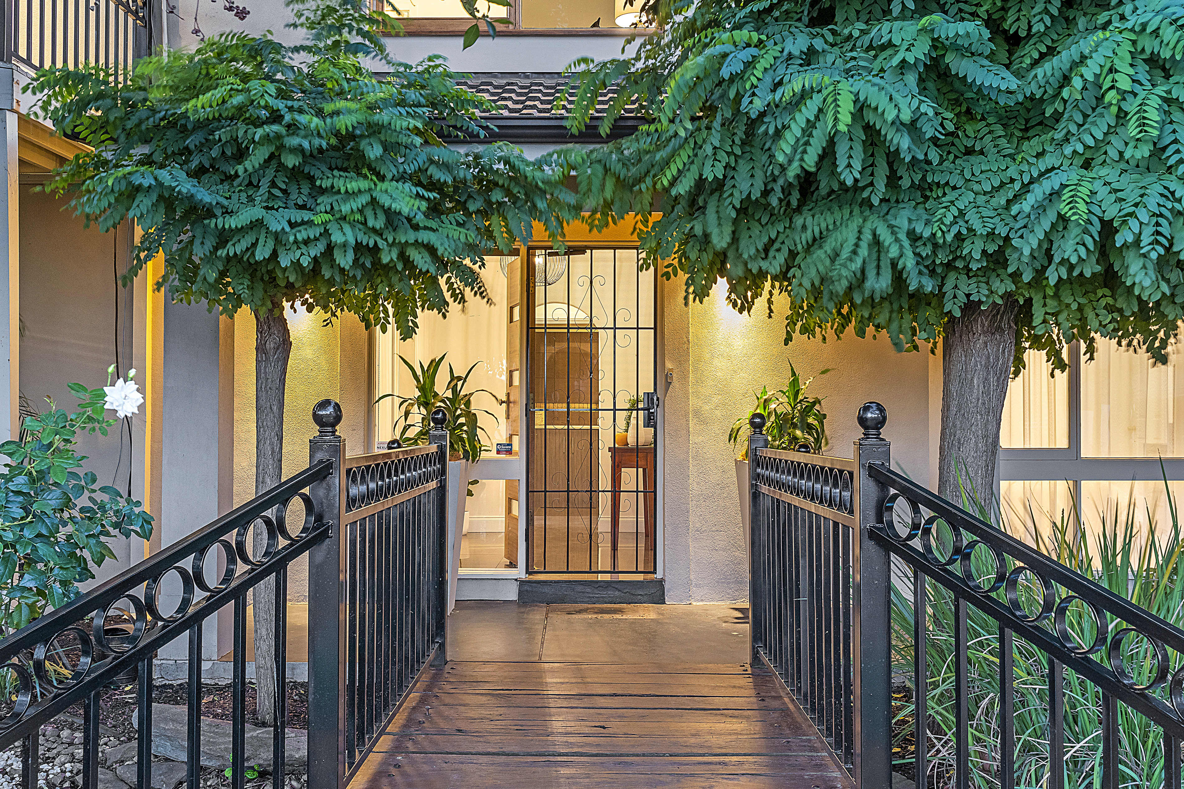 - A lush front yard with a built in water feature and a bridge, paired with a well maintained garden which creates a comfortable environment the moment you step onto the property