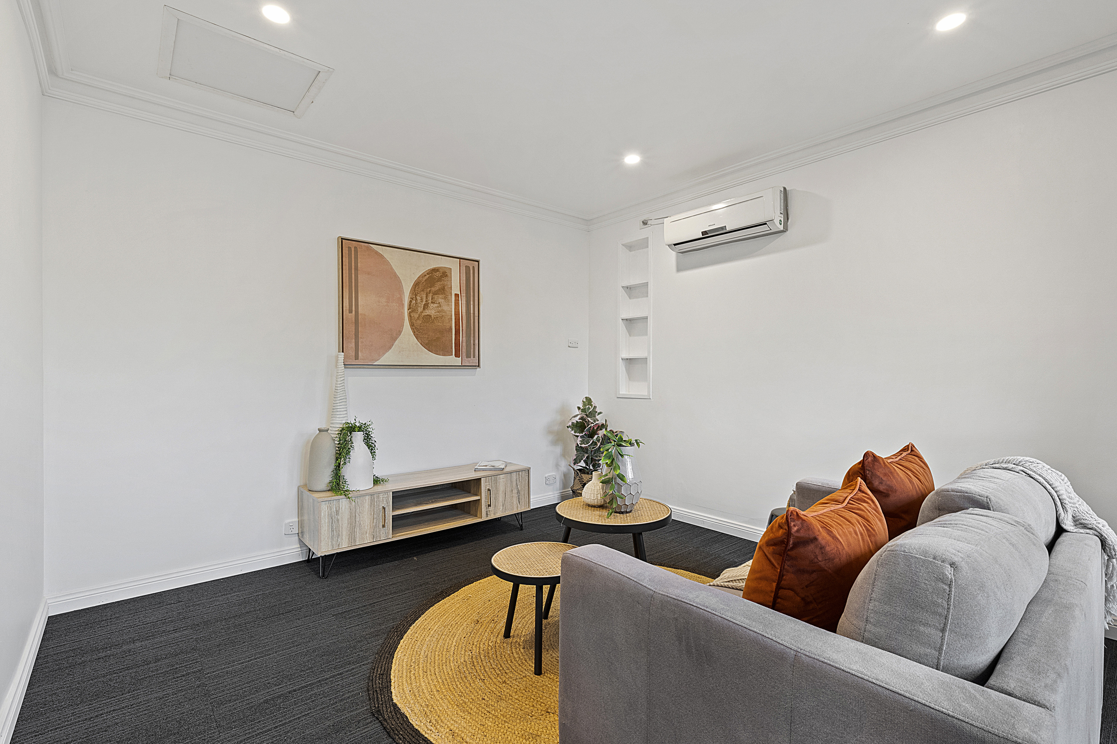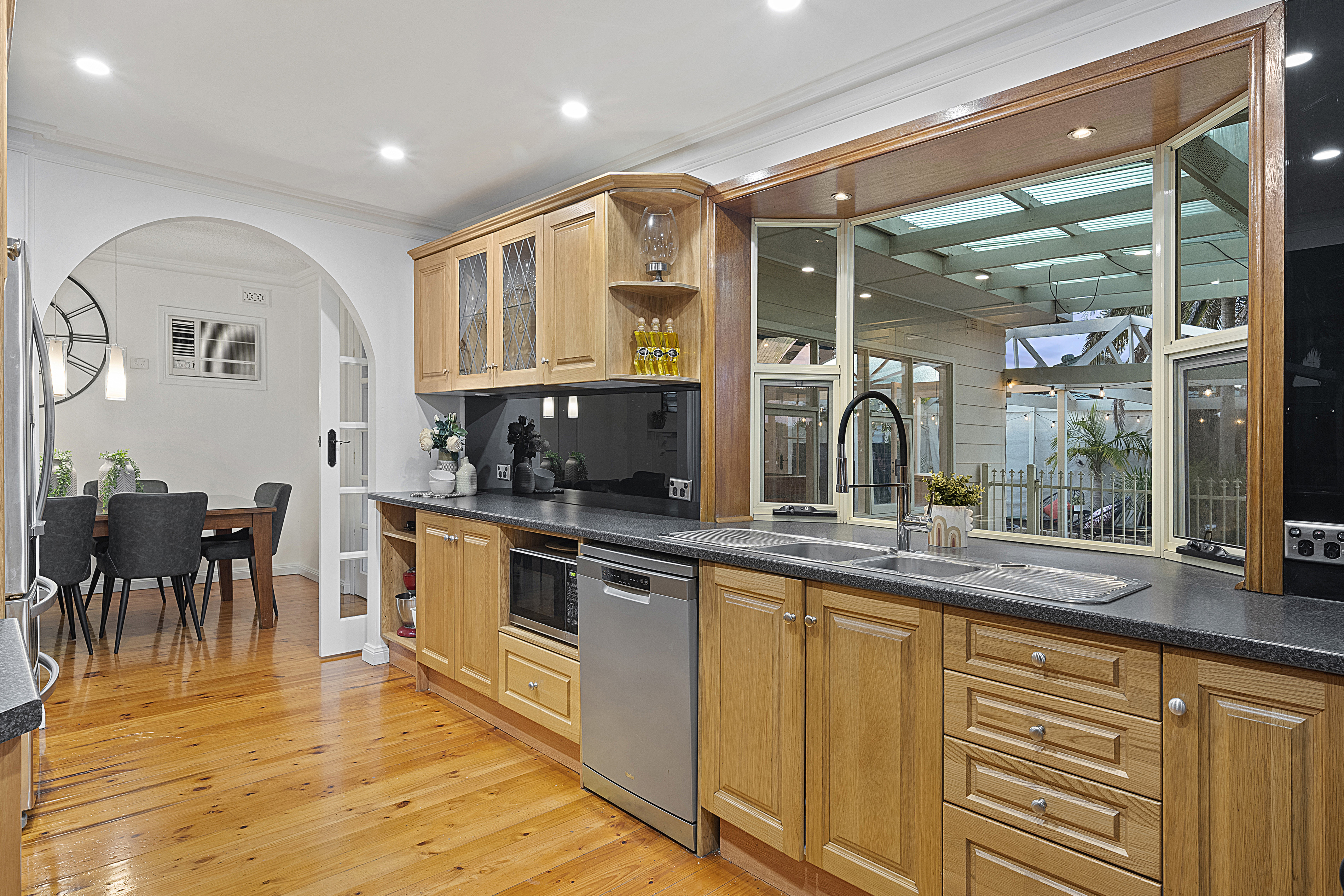 - The dining area features a split system air conditioning unit and access to the kitchen and rumpus room