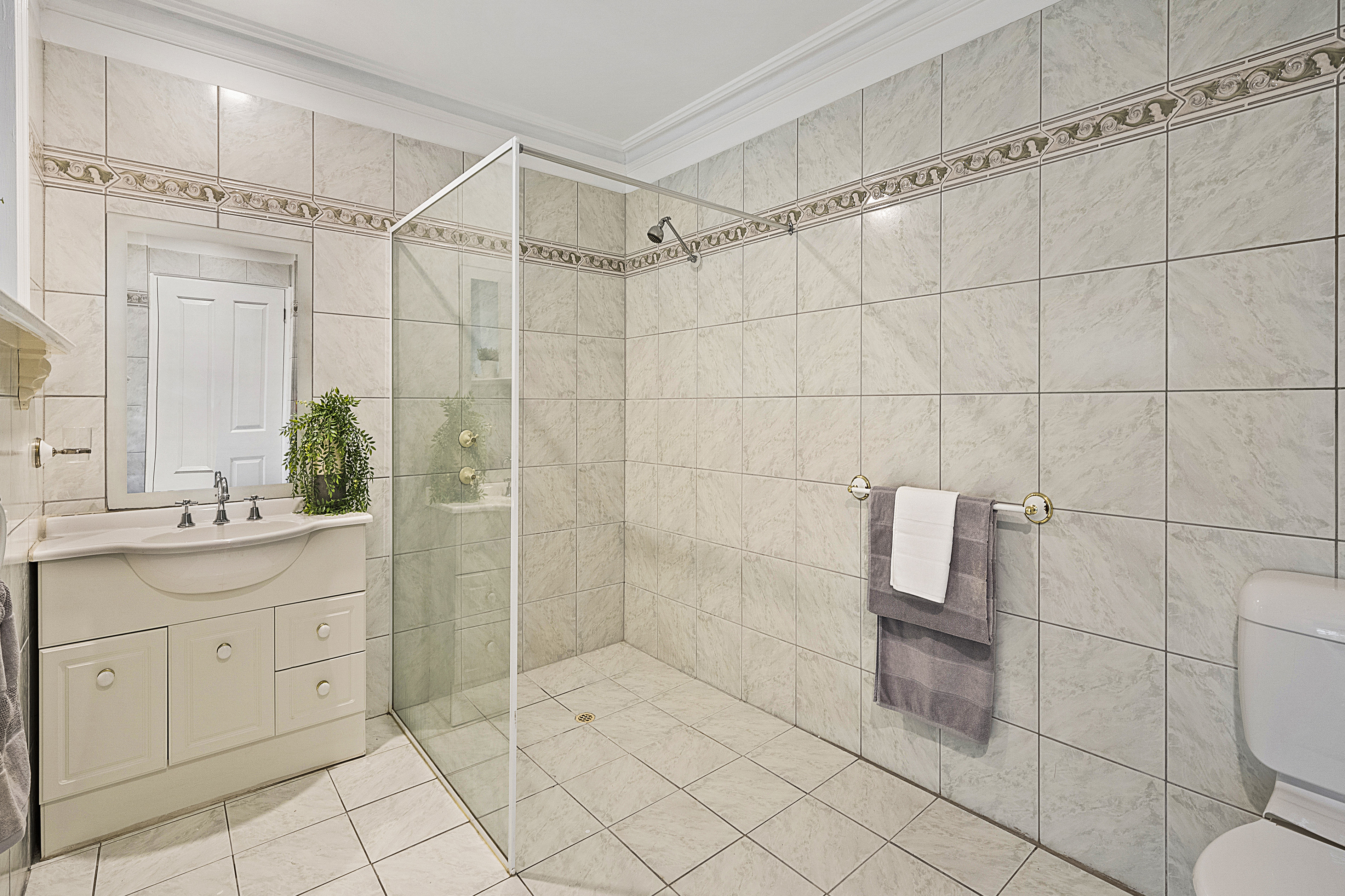 - Tiles to the entrance, both bathrooms, the laundry and the 3rd toilet