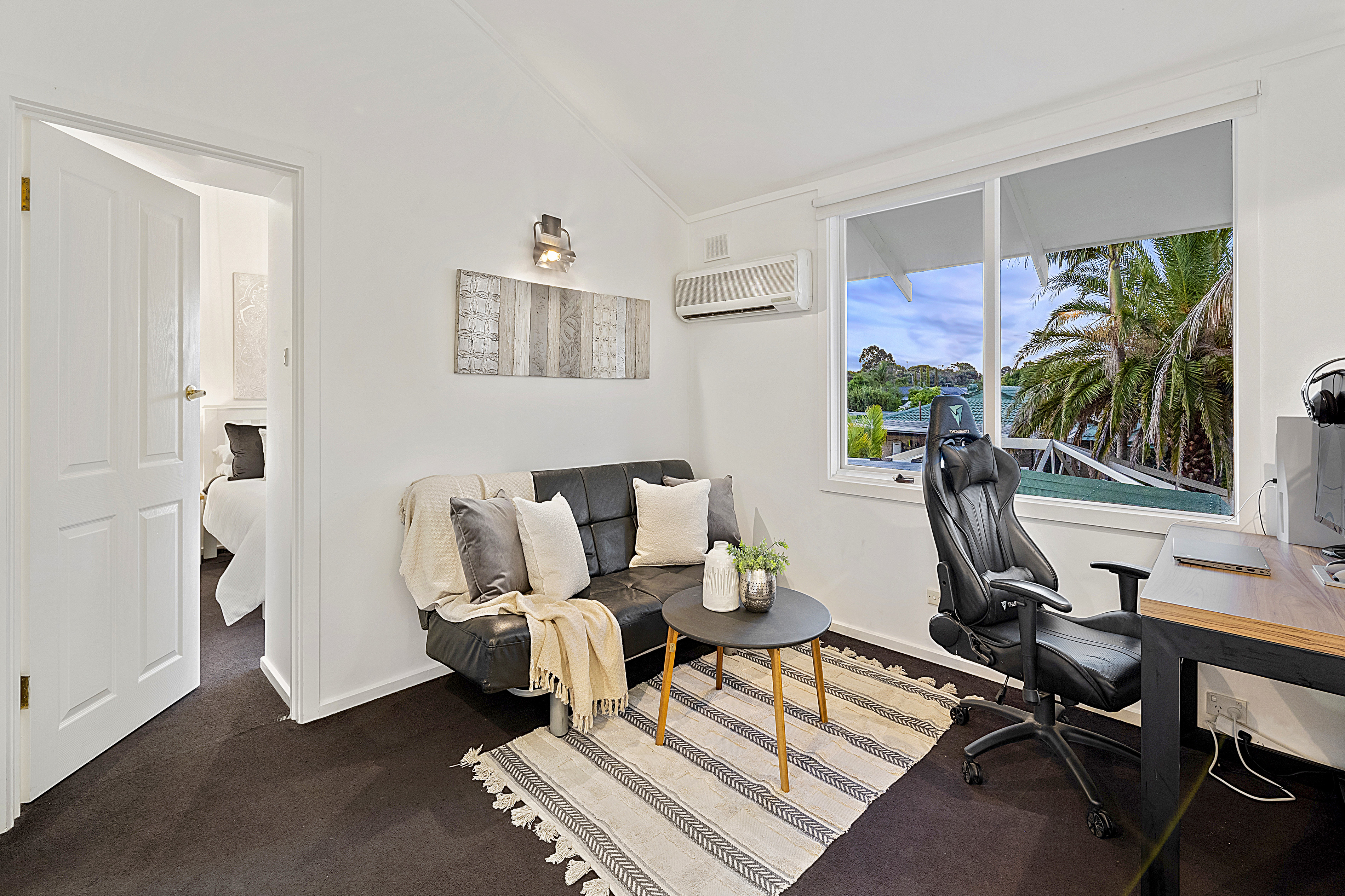 - The retreat includes a ceiling fan, split system air conditioning unit and direct access to the front yard