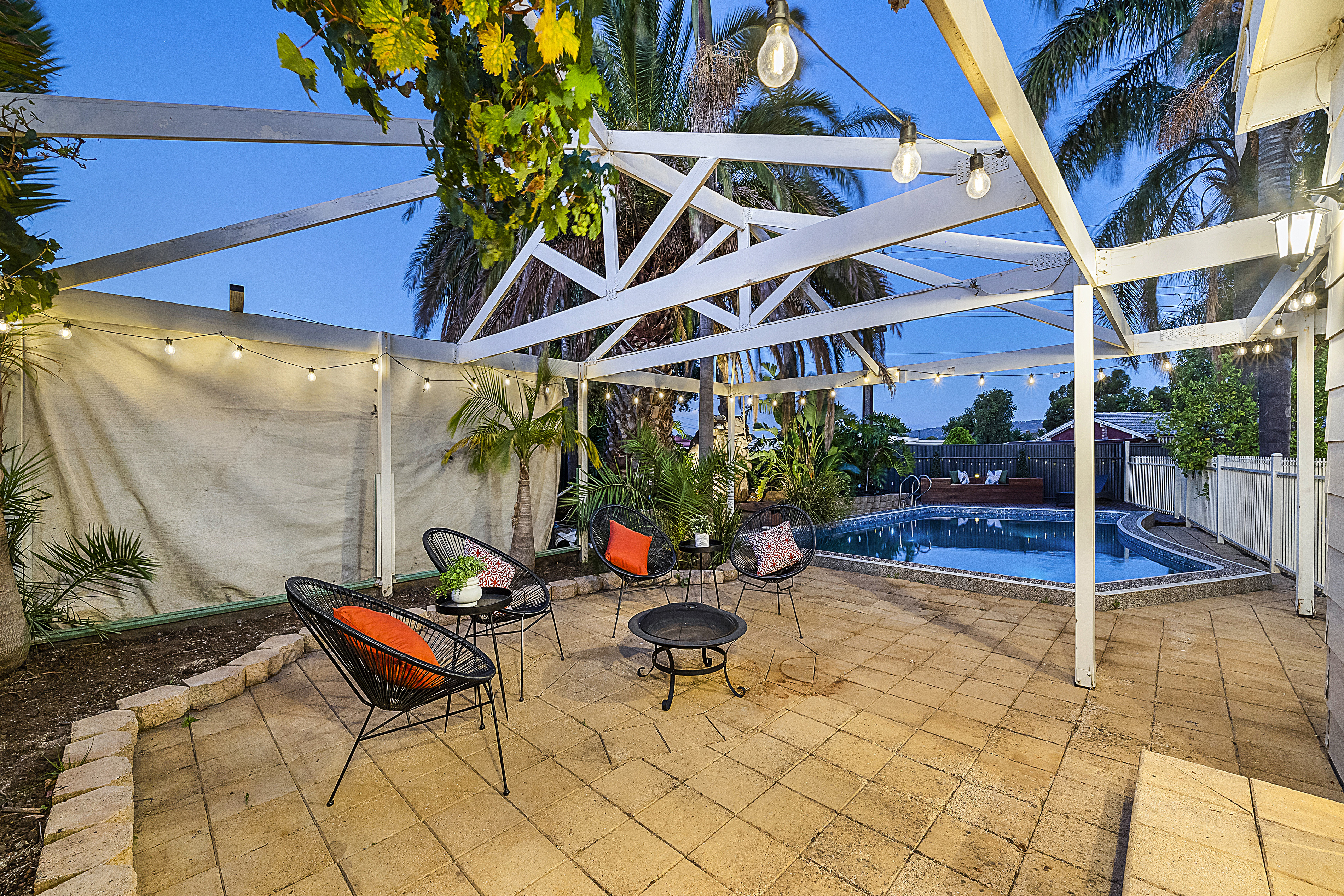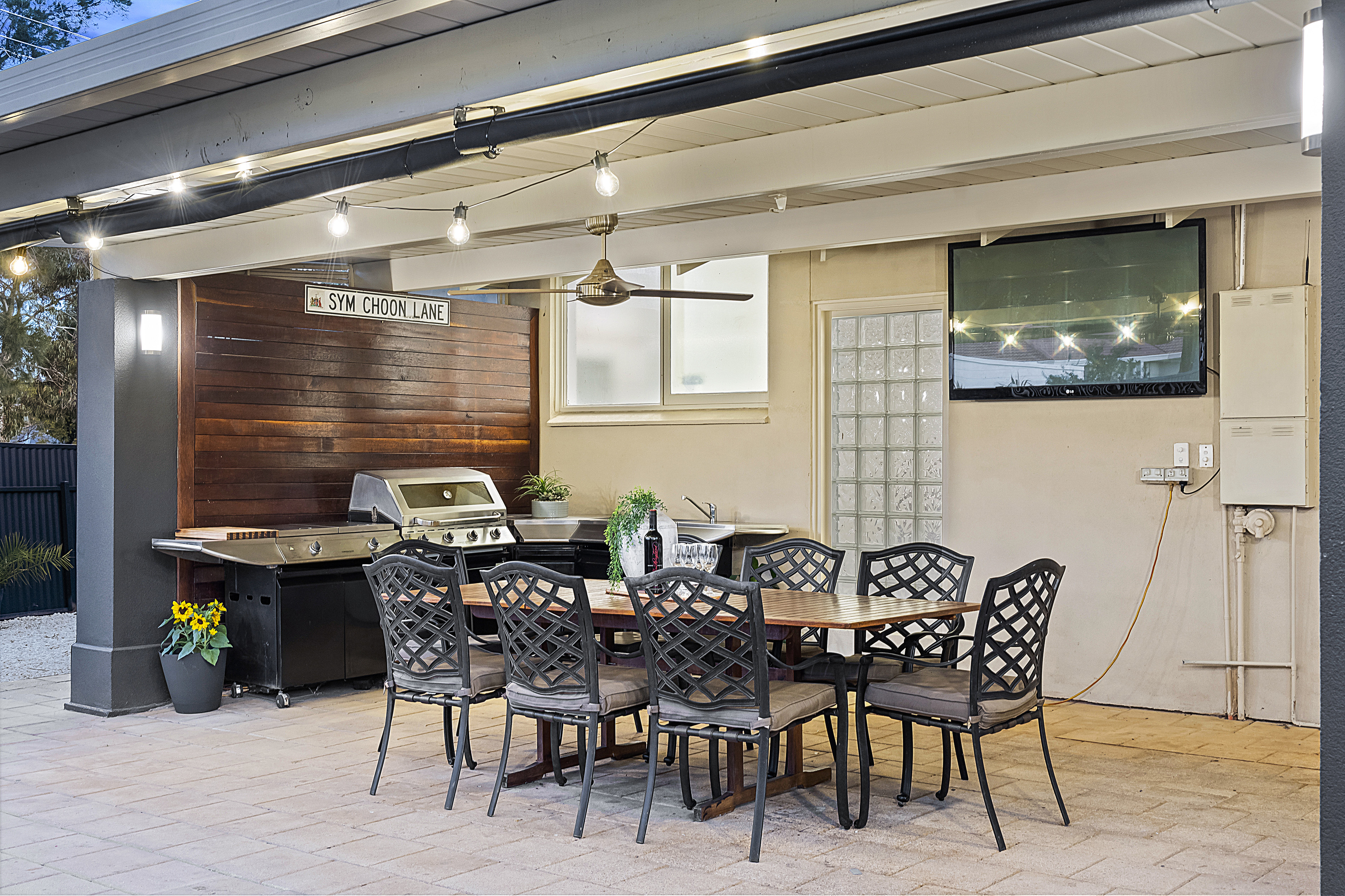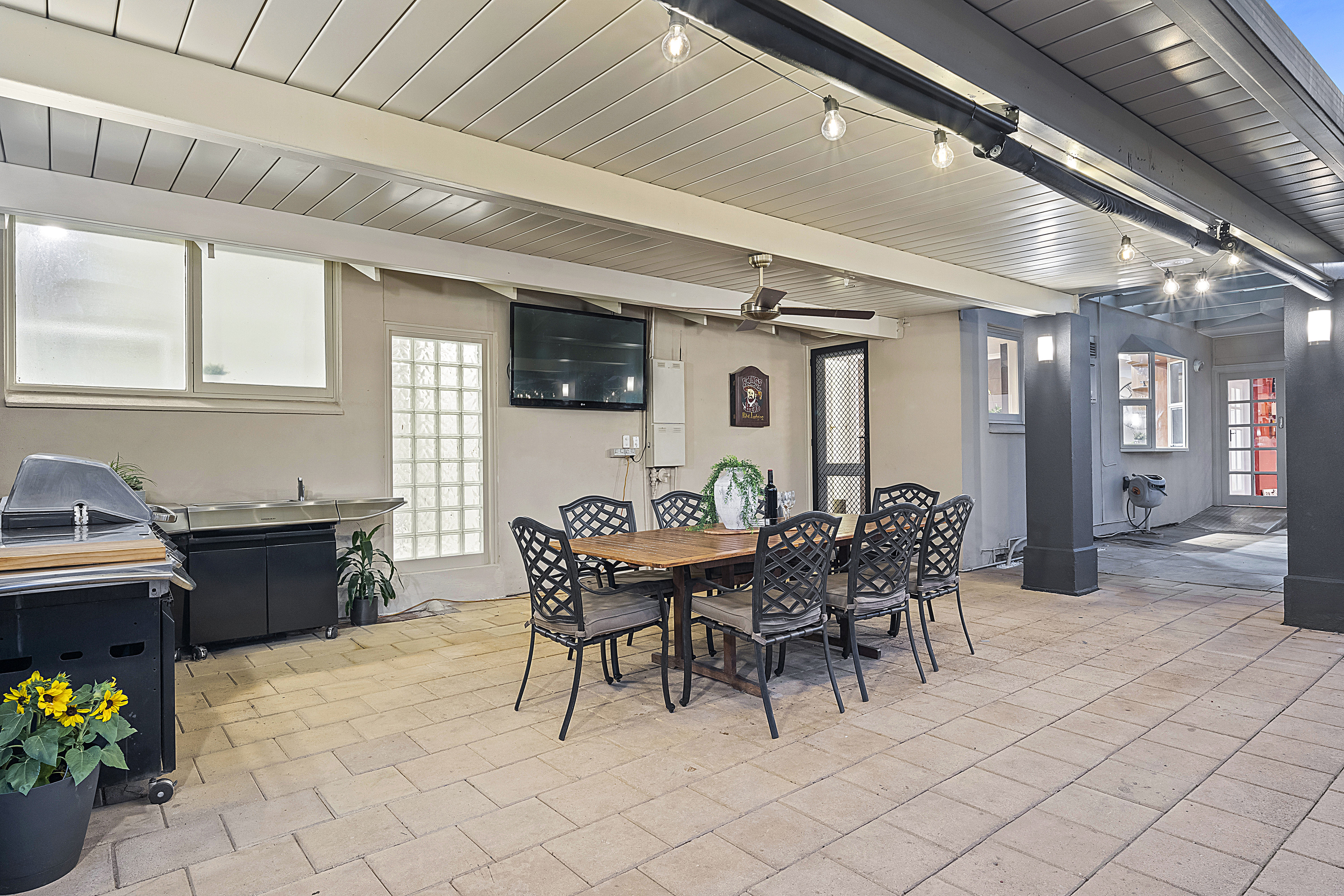 - A spacious undercover entertaining area in the back yard that includes a ceiling fan and roller blinds to increase comfort all year round