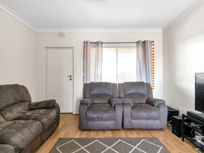 The property has been well maintained and updated. It features 2 good sized bedrooms, including the main with built-in robes. The large lounge room has floating floorboards and access to a private balcony with views of the linear park and with the Adelaide Hills as a backdrop.