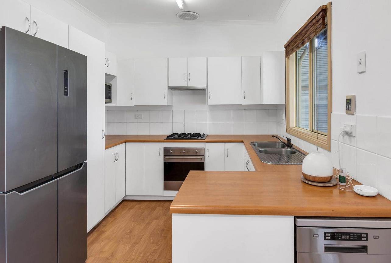 • Built in 2001, the home features a spacious lounge and a casual meals/dining area adjacent to a well-equipped kitchen. The kitchen includes a gas cooktop, dishwasher and plenty of bench and cupboard space.