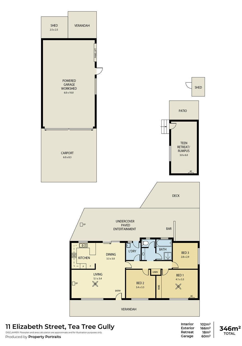• Double carport and large garage/workshop with a partitioned storage area, ideal for tradespeople or home handypersons.