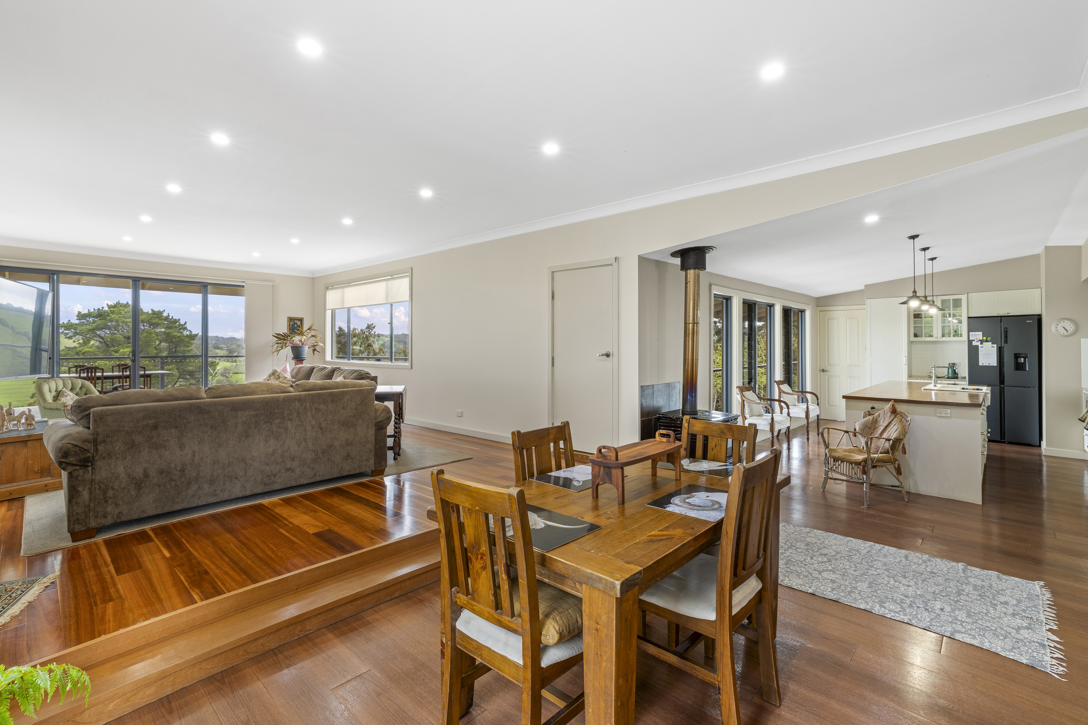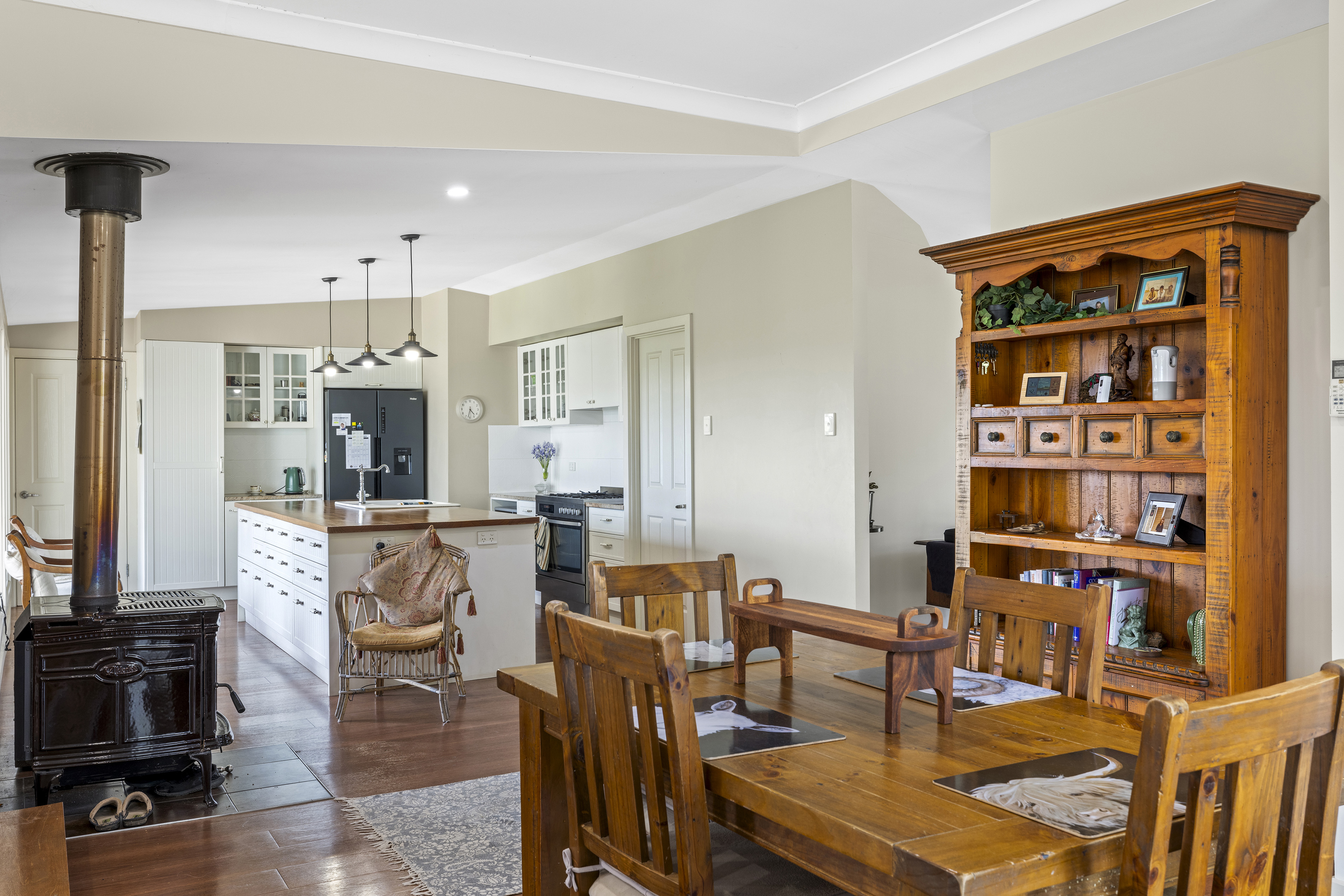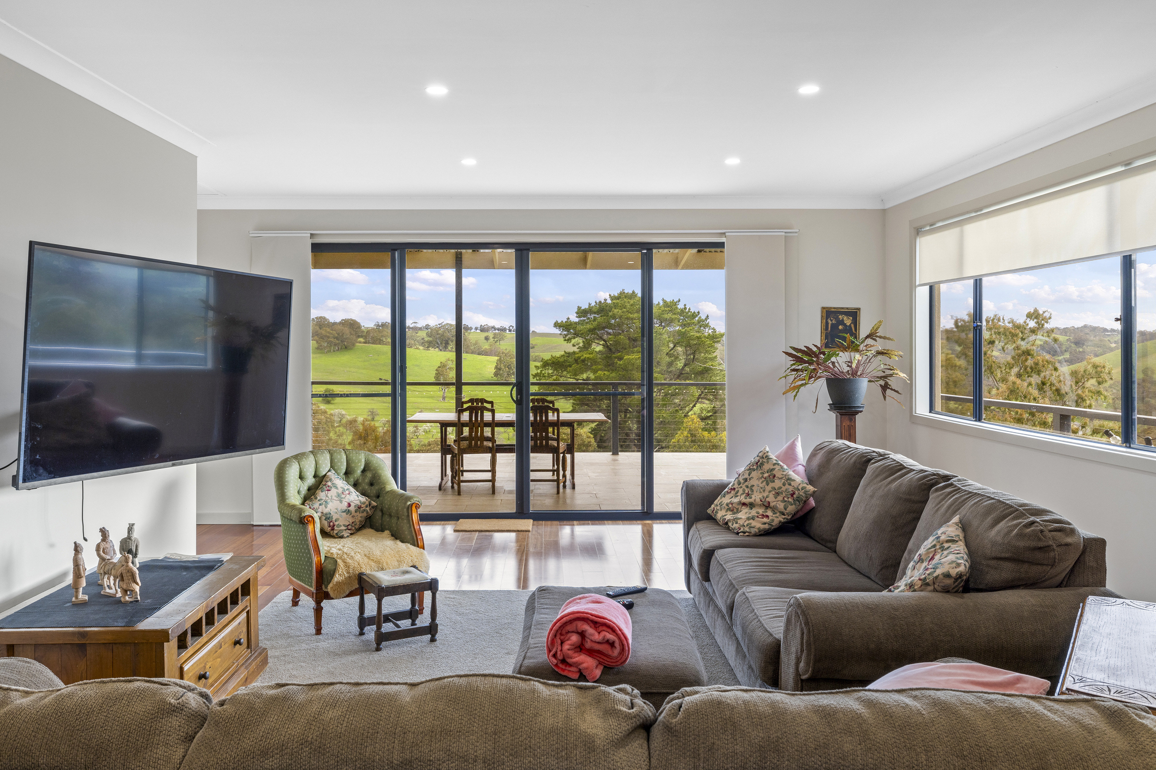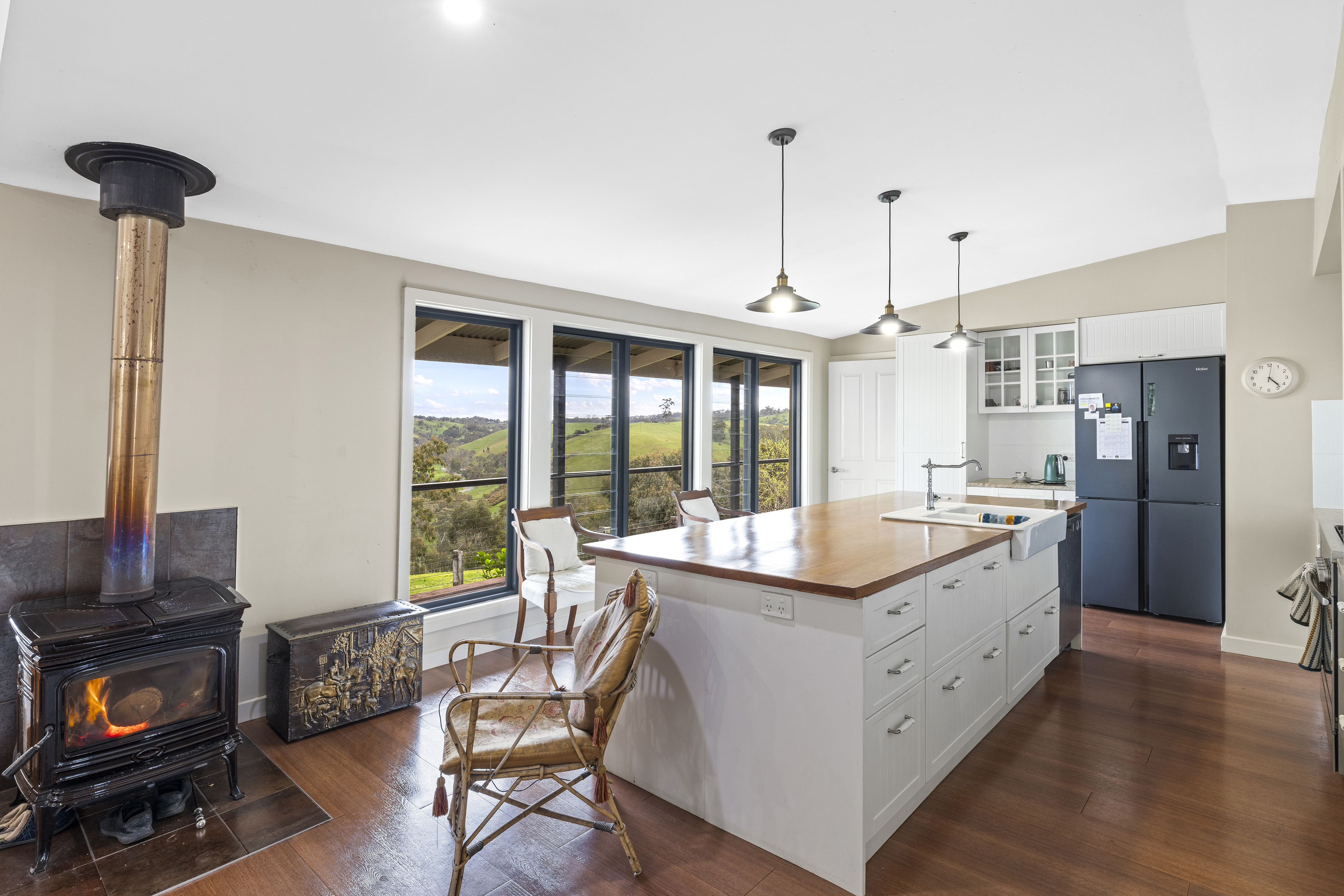 A renovated kitchen forms the heart of the home, with easy access to the living and dining area that opens onto a large deck overlooking the rolling hills - the perfect spot to watch the sun set or sit with an early morning coffee watching the wildlife. A wrap-around porch surrounds the home, offering shady spots to relax and enjoy the ever-changing scenery.