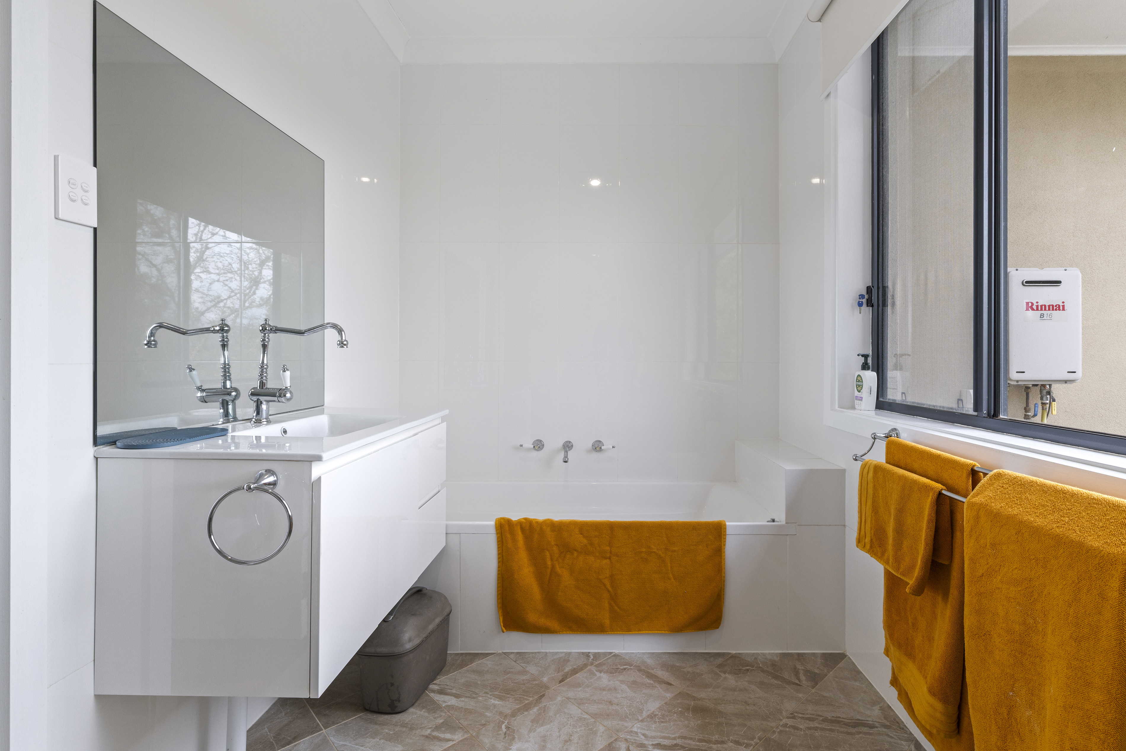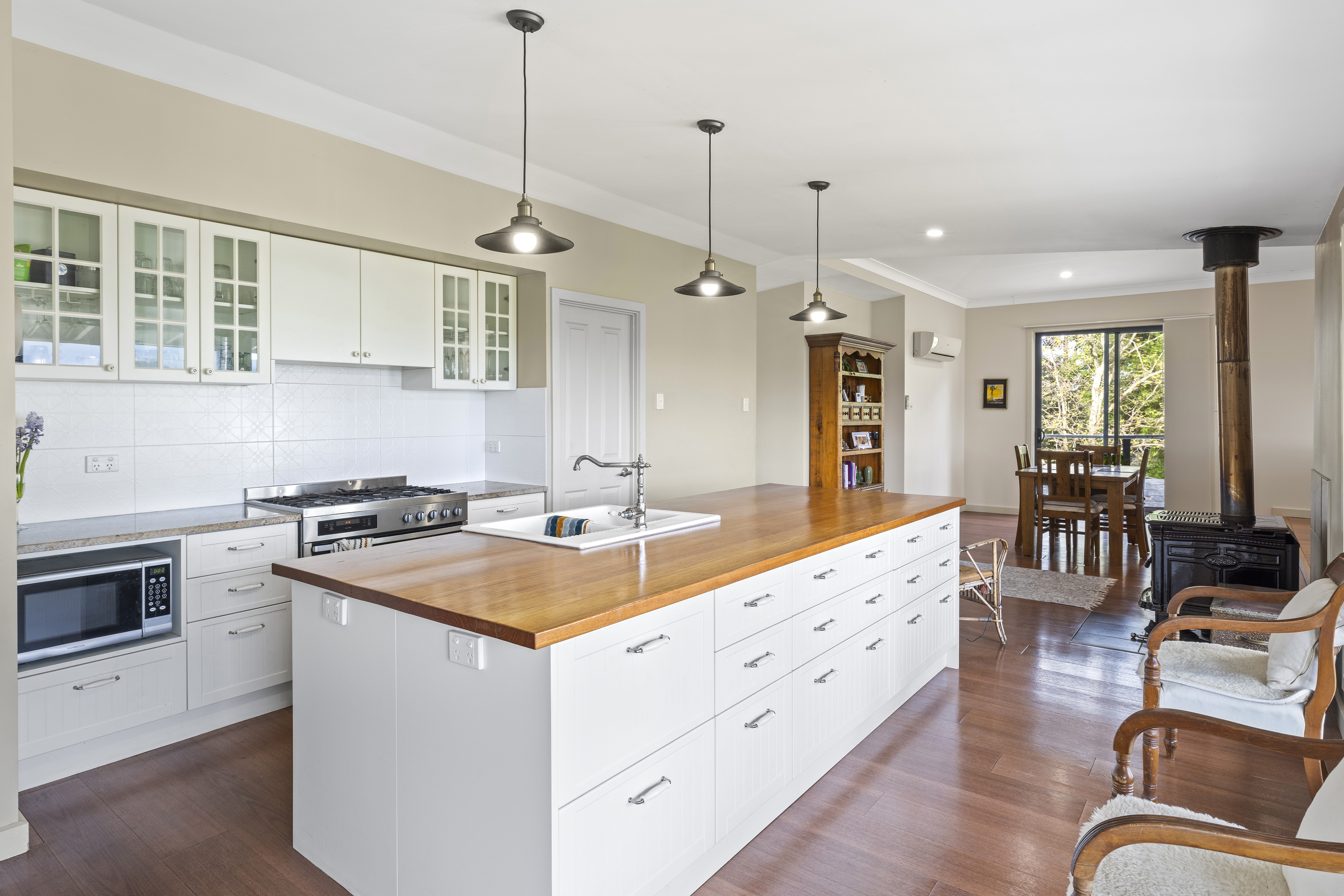 • Large central kitchen with 900mm Oven, double farm house sink, large walk in pantry and amble bench space and cabinetry